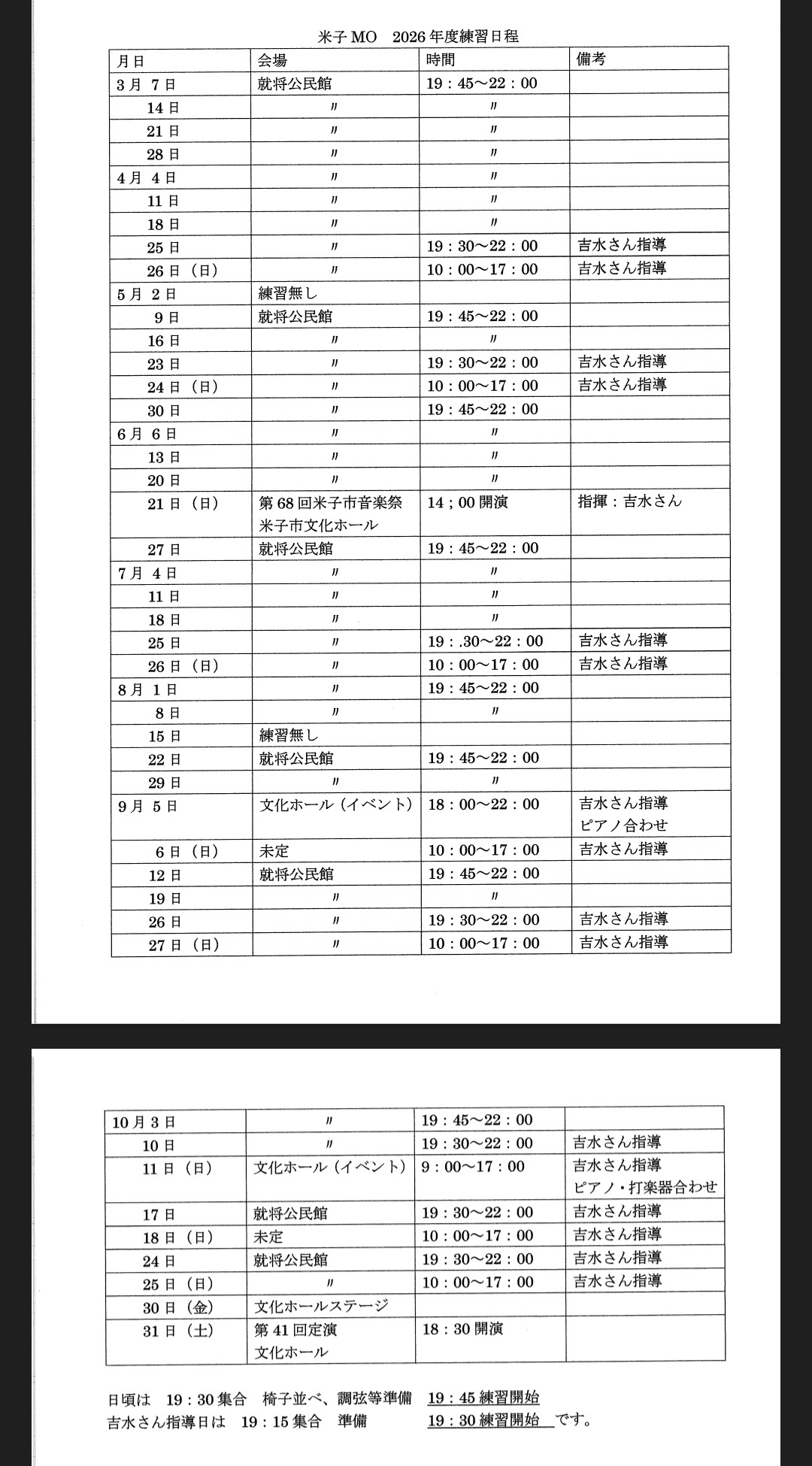 団員募集・練習日程 米子マンドリンオーケストラでは、メンバーを募集しています。マンドリンだけでなく、マンドラ、ギター、マンドセロ、ベースのメンバーも募集しています。参加ご希望の方は、下記までmailお願いします。 最新の練習日・練習場所については、おしらせの練習予定をご覧ください。 会費:一ヶ月1000円 米子マンドリンオーケストラについてのお問い合わせ先 E-mail : nsumiko@sanmedia.or.jp 2026年練習日程